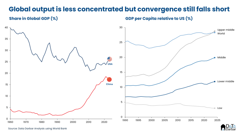 But what is becoming increasingly obvious is that at the frontier of innovation and value creation, concentration is accelerating, not diffusing. This strikes at the heart of a theory that shaped development thinking for half a century: that poorer countries would converge with richer ones. It was the product of the post-war, post-colonial era where newly independent nations were still finding their footing and benefited from the advantage of backwardness, as far as growth rates were concerned. As an academic field, dev econ in general drew serious intellectual firepower from this region, with massive contributions from Sen, Haq, Sobhan among many others.