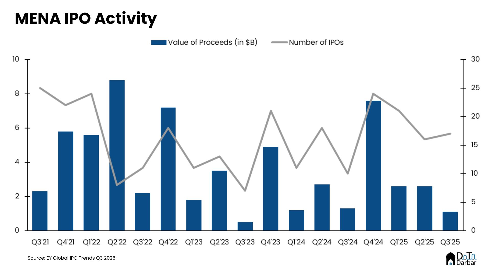 Globally, the exit environment has shown signs of reprieve and MENA, for its part, seems to be much better placed. According to EY, the region saw 54 listings in 9M’24, substantially higher than the same period in past three years. Value of proceeds was $6.3B, up 21% YoY. However, the choice of exchange is interesting because lately, Saudi Tadawul has driven more than half the activity.